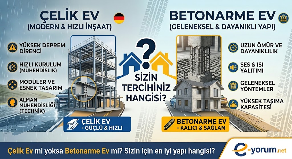 Lüleburgaz Kırıkköy tarafında 408 metrekare büyüklüğünde bir arsam var. Yaklaşık 1 sene önce satın aldım, daha önce tarlam vardı ama malum tarlaya istediğim şeyi yapamıyordum. Bu yüzden arsa daha iyi oldu, bu yaz mevsiminde kısmetse bir ev yaptırmak istiyorum ancak çelik ev mi yoksa betonarme mi yaptırsam bir türlü karar veremedik. Hangisi daha iyi olur ve mantıklı olur? Her şeyi düşünmek lazım yarın öbür gün satmayı da düşünmek lazım o zamanlar hangisi daha değerli olur? Çelik ev dedim ama onun da hafif çelik ağır çelik gibi seçenekleri var. Hafif çelik olsa sorun yaratır mı yağmurda çamurda?
